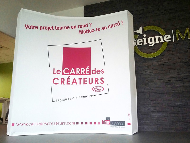 En Voir +CARRE DES CREATEURSFabrication d'un fond de stand courbé en tissus.
